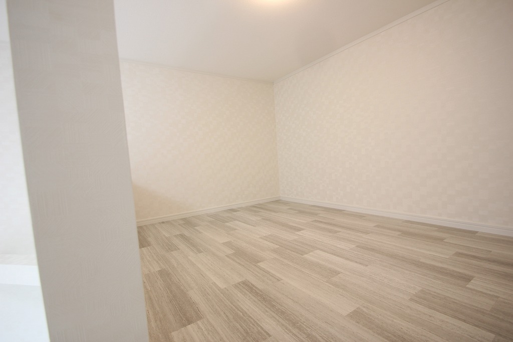 白を基調とした壁紙と床材で清潔感があっていい感じですね