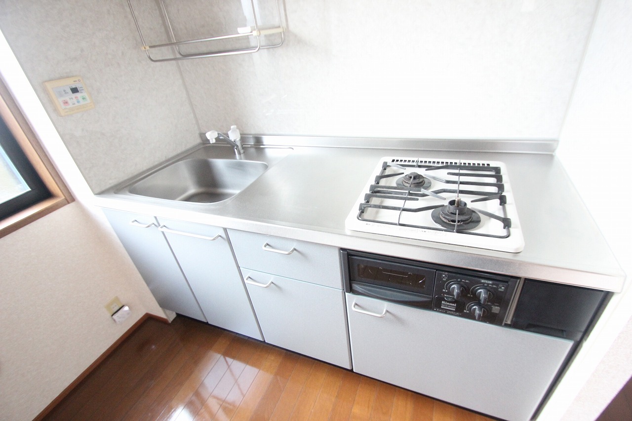 コンロも2口のシステムキッチンに、作業スペースもひろめ!
