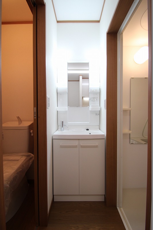 脱衣所は無いですがしっかり洗面台はございます。