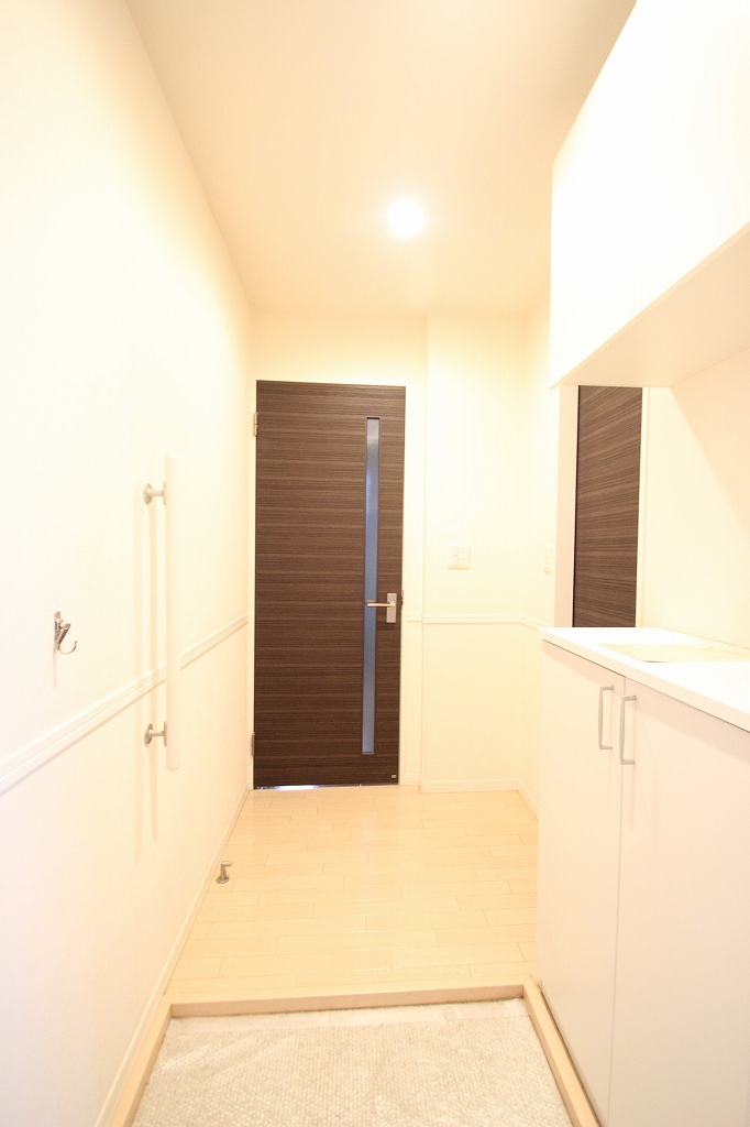 玄関ホールは割と広めで、玄関すぐよこに洗面所とお風呂があります!