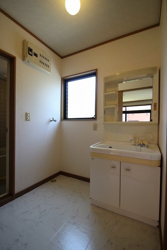 洗面所はこんな感じで脱衣所としても広めな感じですね