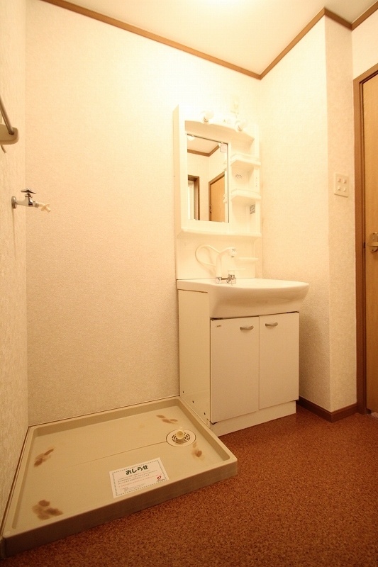 そこそこ広い脱衣所なので二人いてぶつかることの少ない脱衣所になります。
