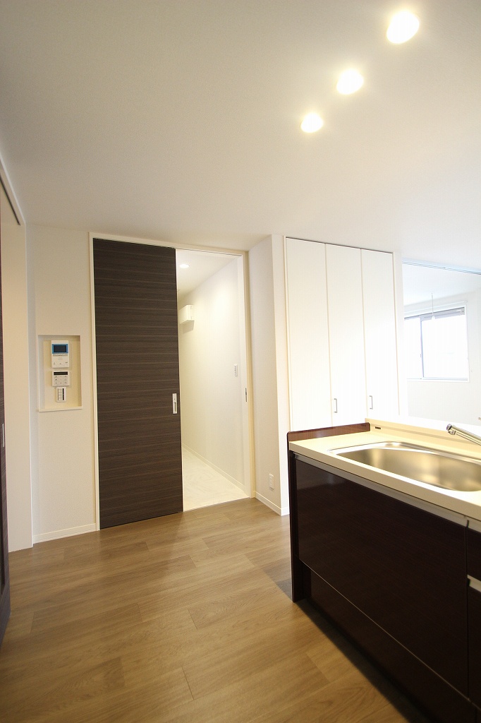 インターフォン周りについてはキッチン横のニッチ部分に収納されております