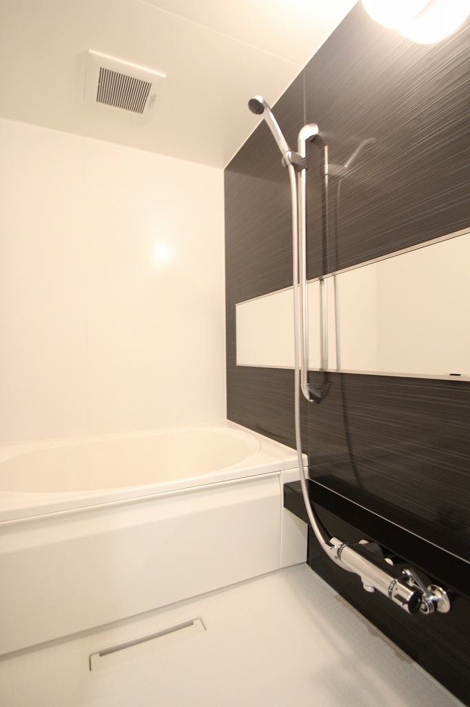 お風呂は横幅の鏡のタイプにシングルレバータイプの水栓になっております