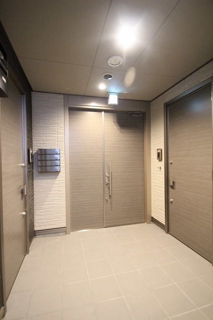 外からの玄関のオートロック部分はこんな感じになっており、各部屋のダイヤル式ポストが付いておりますね