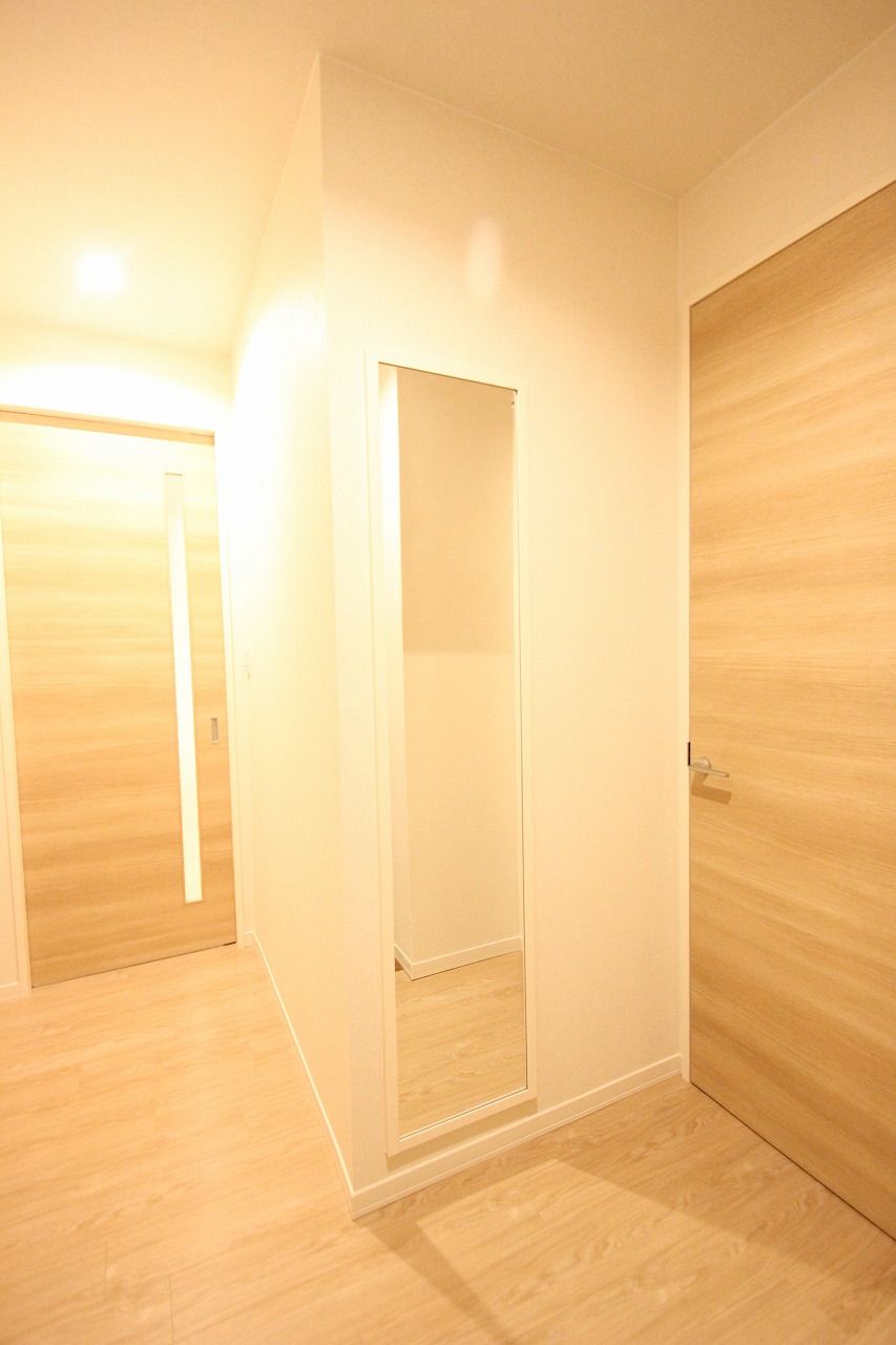 入って向かいの壁には姿見設置済み!