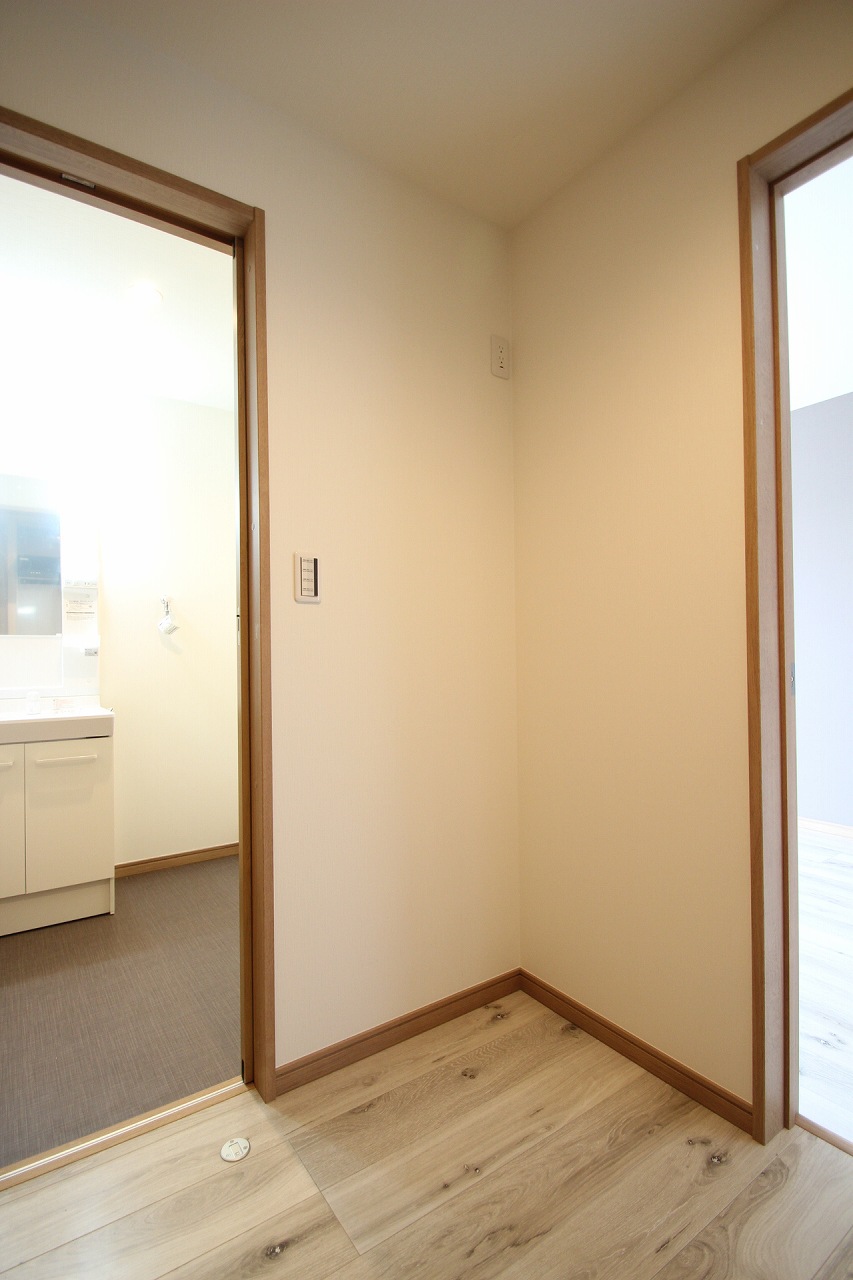 キッチン背面には冷蔵庫等の置場もあります。