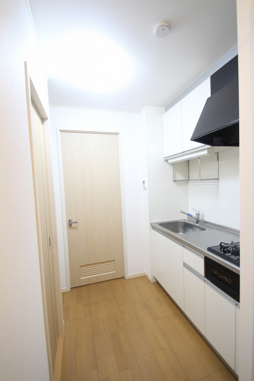 キッチンはシステムキッチンで2口コンロ!都市ガスなので光熱費が抑えられます。