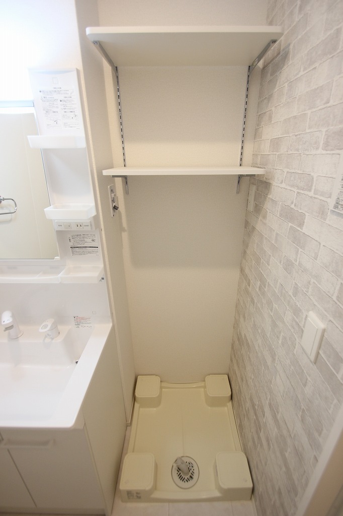 洗濯機置き場にはもともと棚もついておりますので自分で用意しなくても良いのは嬉しいポイントですね