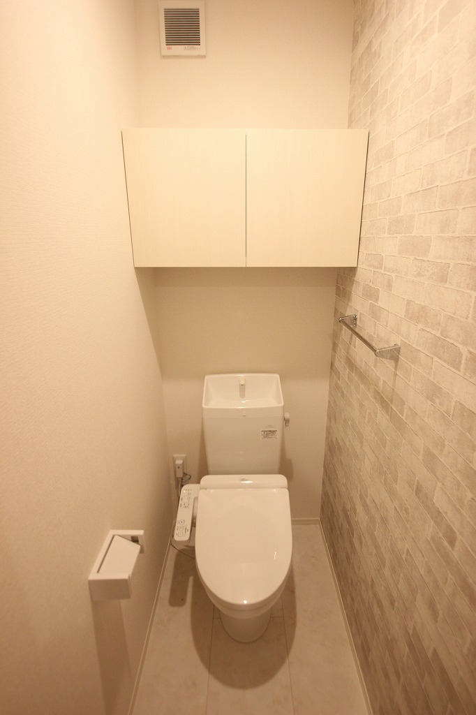 洗面所と一緒でトイレにもアクセントクロスが使用されておりますね