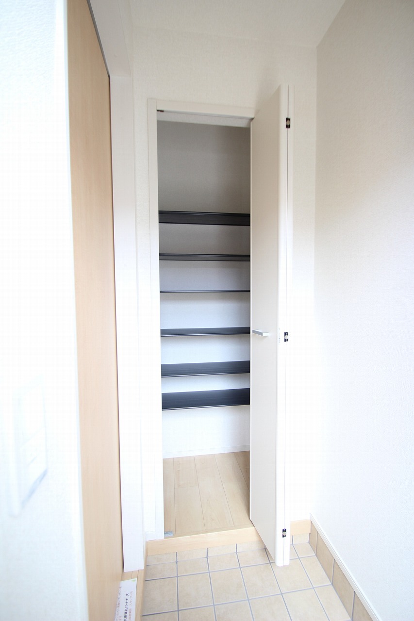 他にも靴だけでなく外で使う用の道具を収納できそうなくらいの広さがございます。