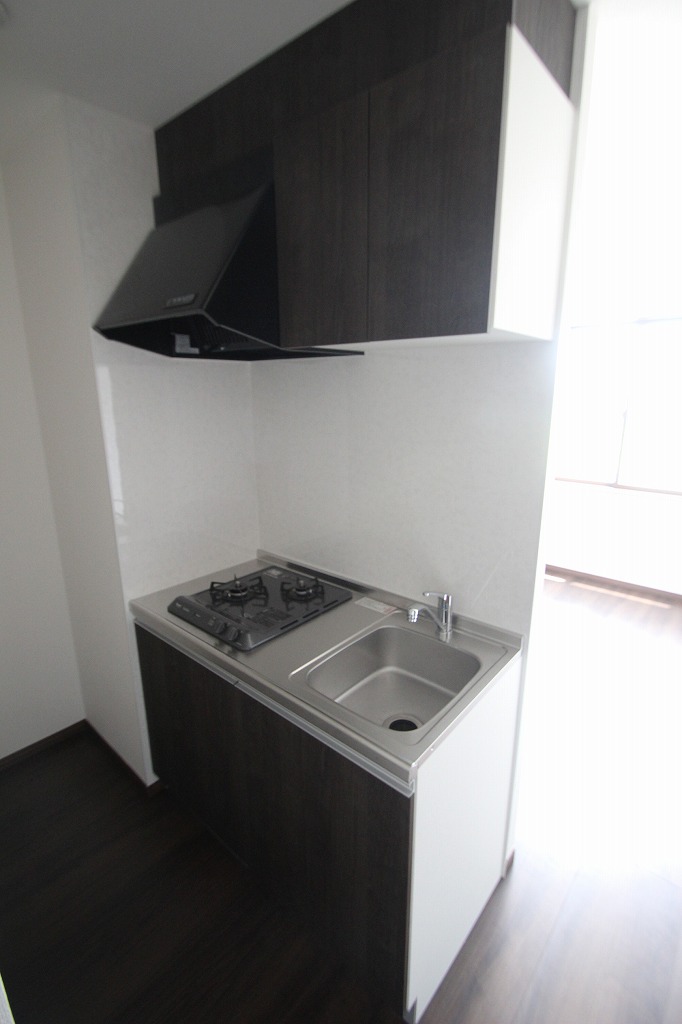キッチンは調理スペースは狭いですが、二口コンロのシステムキッチンになっております