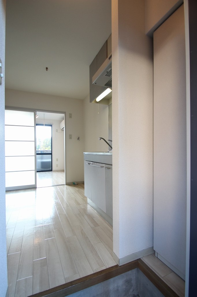 玄関はこんな感じでパーテーションを閉めれば来客時も部屋の中が見えなくて安心ですね