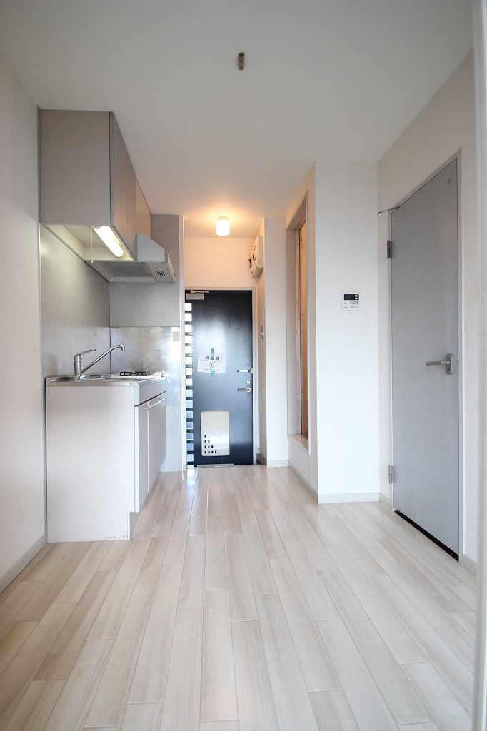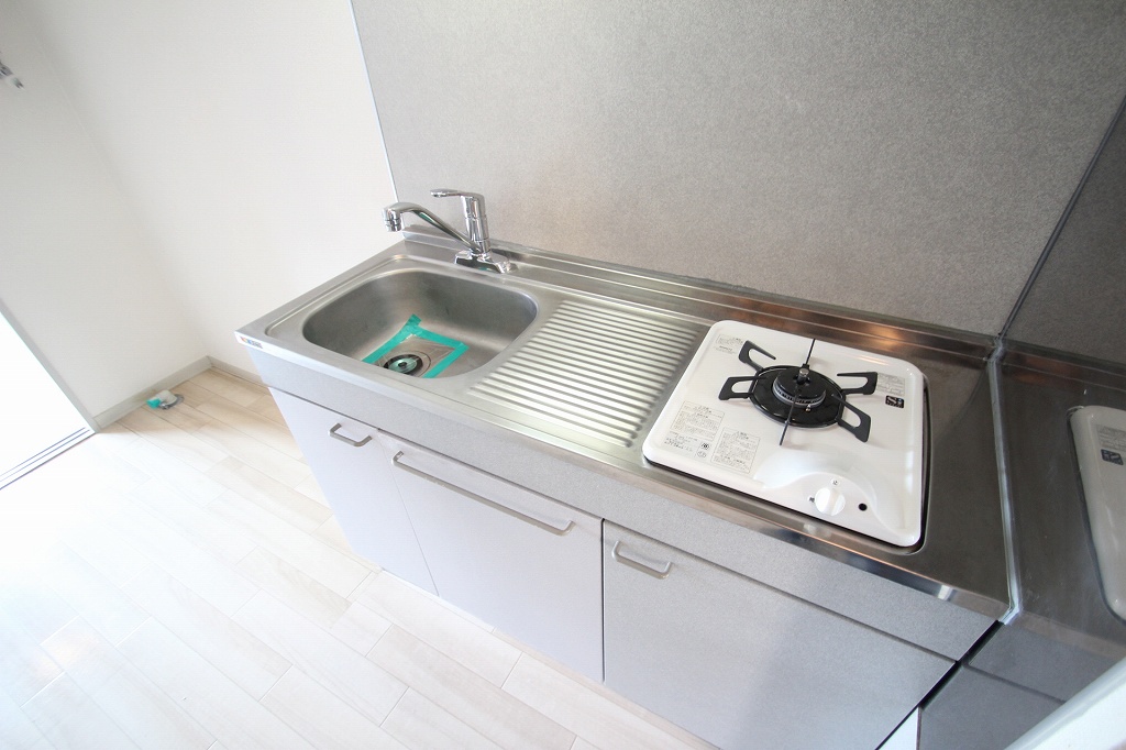 キッチンはこんな感じで調理スペースのある1人用の台所です