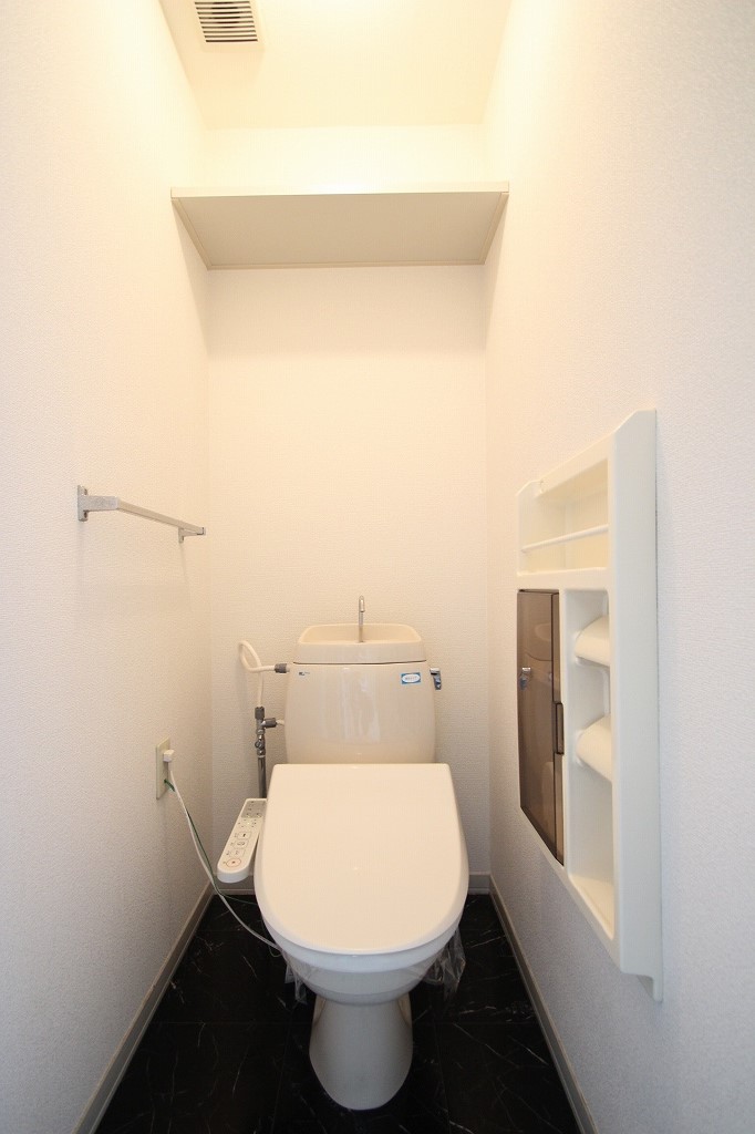 トイレはウォシュレットはもちろんのこと棚やペーパーホルダーが設備されております