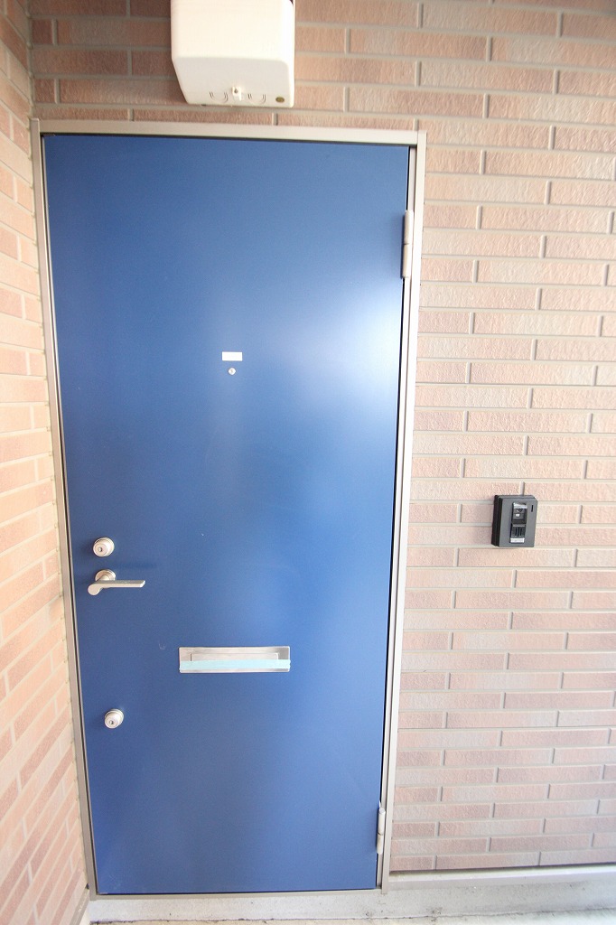 青い玄関ってなかなか見ないのでちょっと変わってて面白いですね