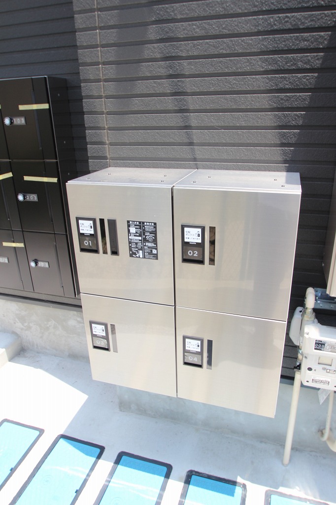 まずお部屋に行く前に通る共用部分には宅配ボックスとダイヤル式のポストがございます