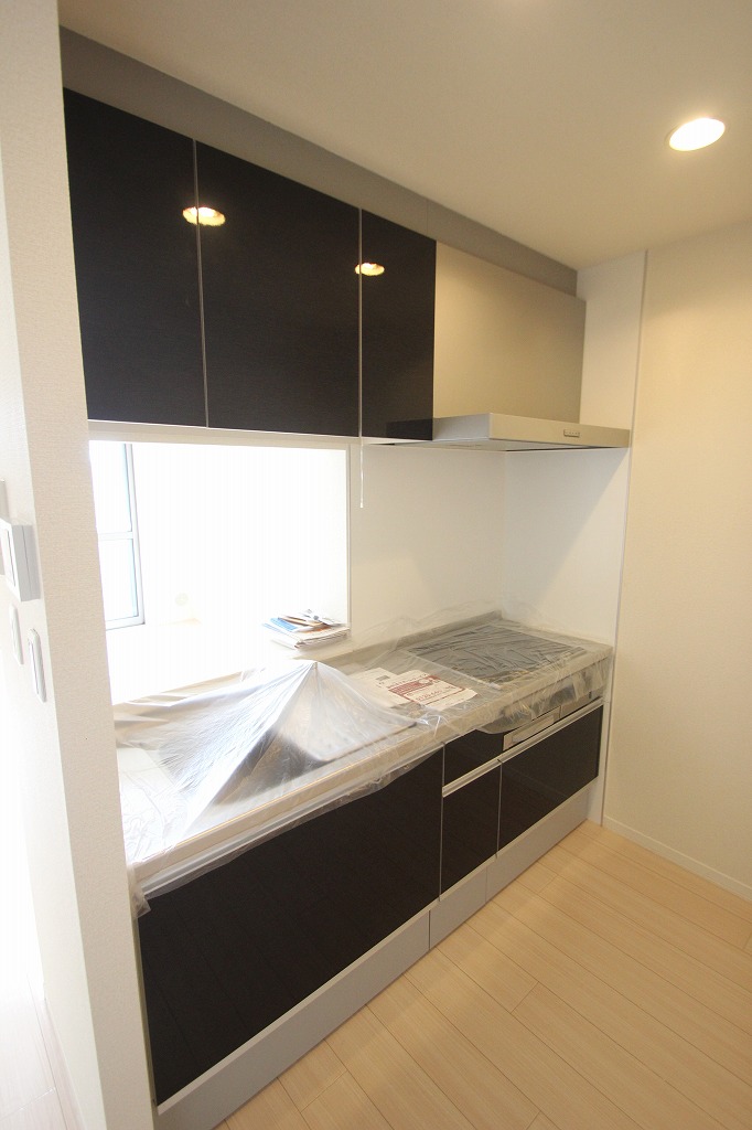 キッチンはIHのシステムキッチンで収納もたくさん入る仕様なので、個別の収納が少なくて済みますね