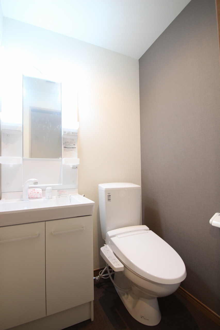 洗面台はシャンプードレッサー仕様で、忙しい朝には欠かせない設備です