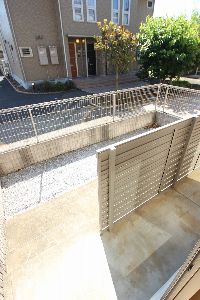 お庭はこんな感じで大分広さがありますので洗濯物を干すのはもちろんのこと、冬用のタイヤなど外に置いておいてもいいような備品を置いたり、プランターを並べてのガーデニングなどもできますね