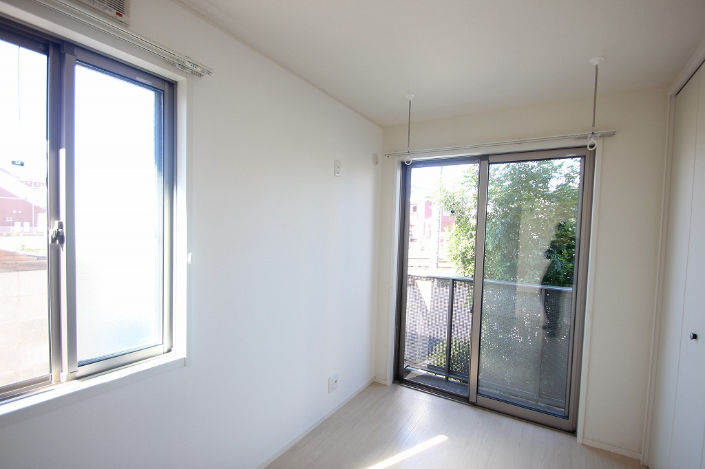 こちらのお部屋は二面採光なので在宅中はシャッターを開けて日を取り込むのがおススメです