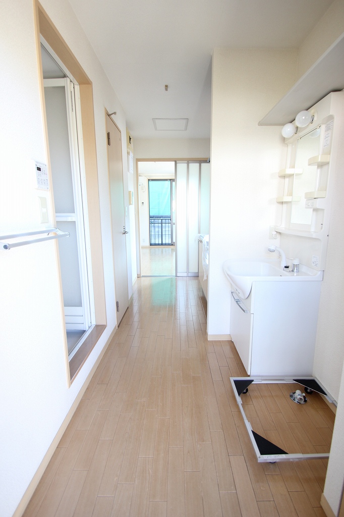 脱衣所はないので工夫が必要です!
