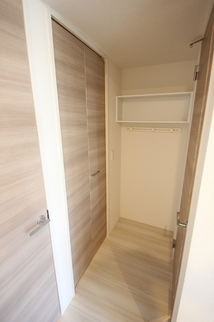 中には備え付けの収納棚もございますので収納はここだけ十分な収納力です