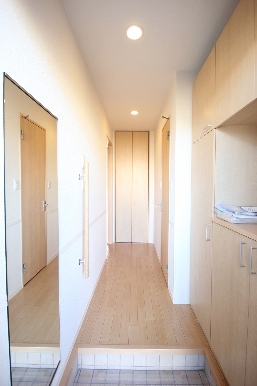 姿見、大きなシューズボックス、収納があり、充実した玄関です!!