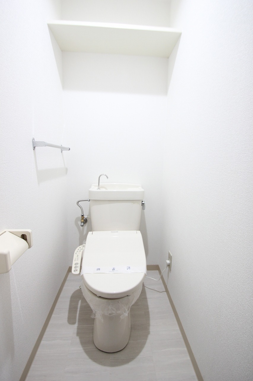 お手洗いは洗面所同様に白を基調とした内装となっておりますので明るく感じますね