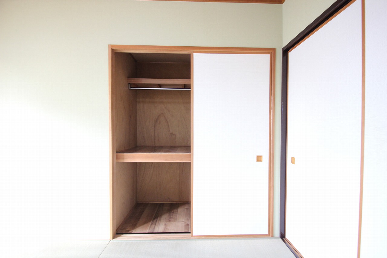 収納は押し入れのタイプになっておりますのでお布団で寝たい方などはこちらにしまうこともできますよ