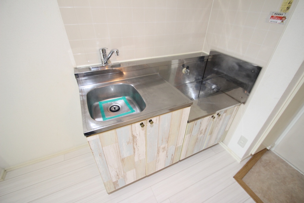 キッチンはシンクもそこそこ大きく、まな板も置けるくらいの広さ!