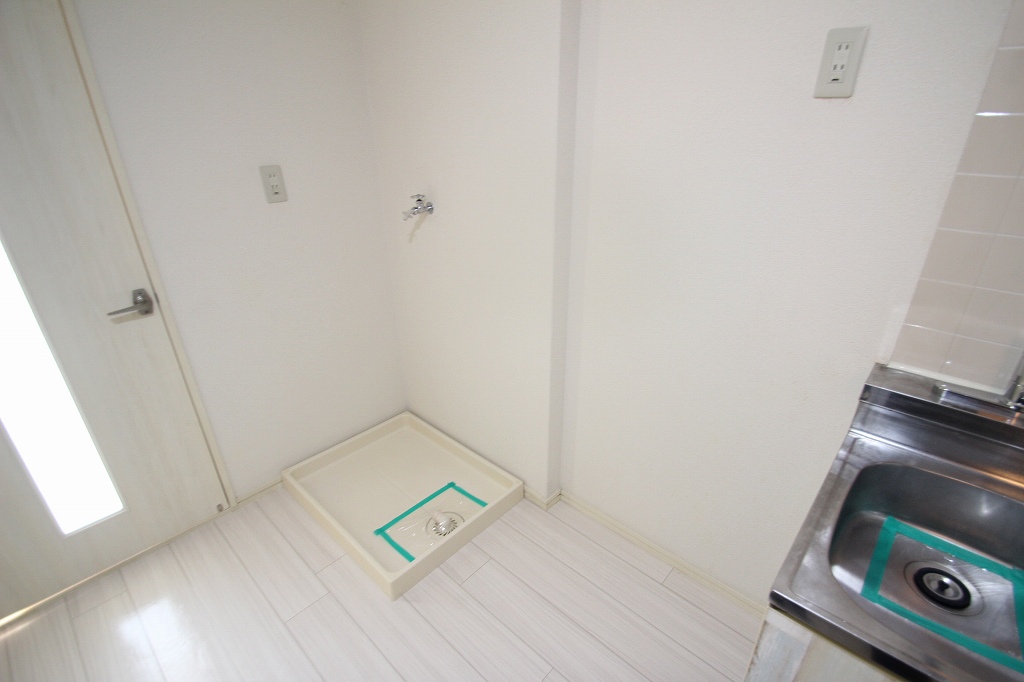 キッチン横は冷蔵庫置き場と洗濯機置き場です。
