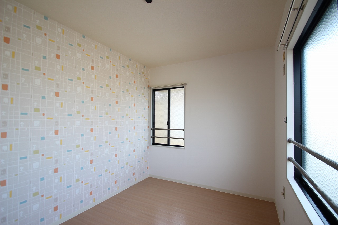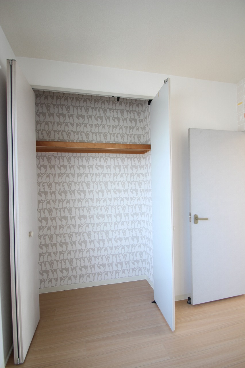 こちらは洋室の壁と収納の中にアクセントクロスです