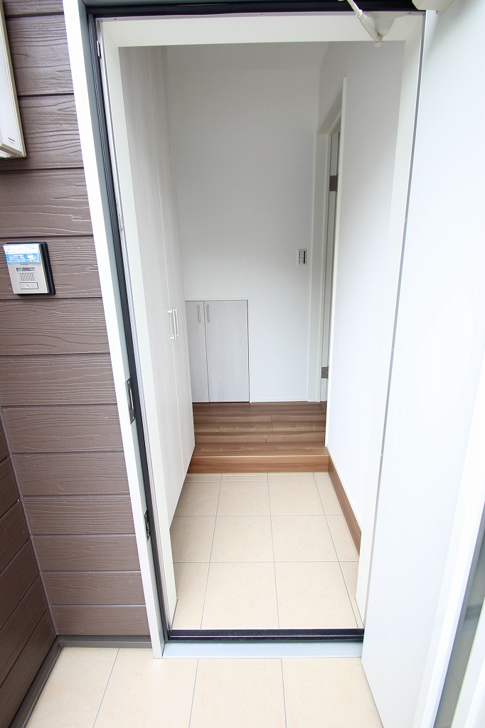 玄関はこんな感じで広めの玄関ホールに大きめのシューズボックスと階段下収納がございます!