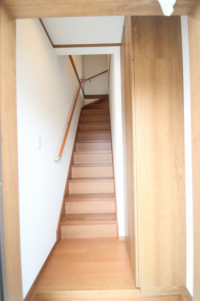 玄関を開けると2階の居室につながる階段がお出迎え致します