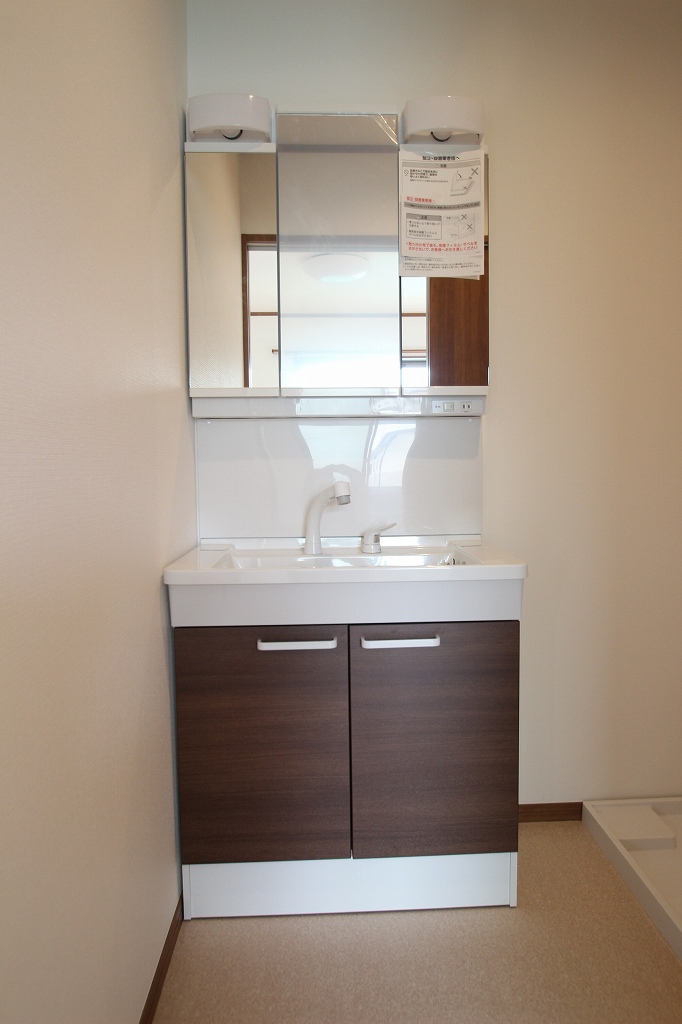 洗面所は三面鏡タイプのシャンプードレッサーとなっております