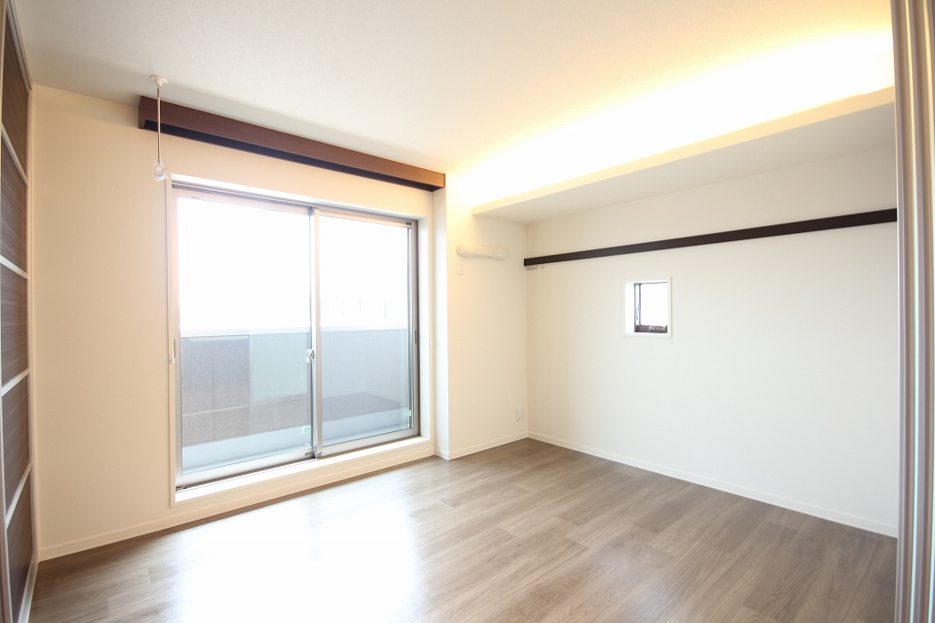 寝室には室内干しあり!小窓もあります