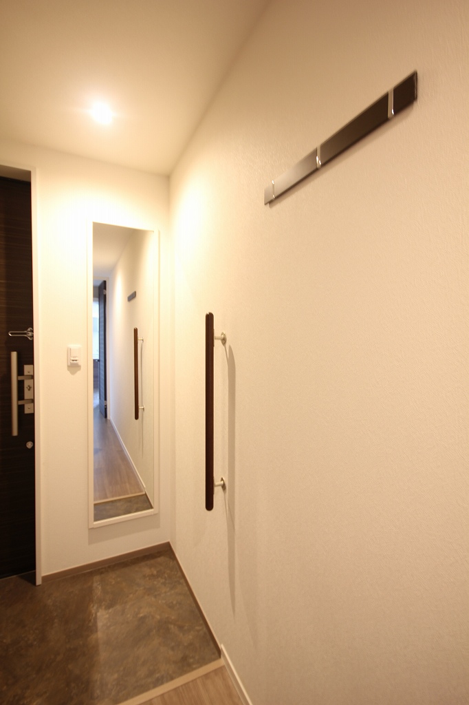 まず玄関には姿見とウォールフック、手すりもあります!