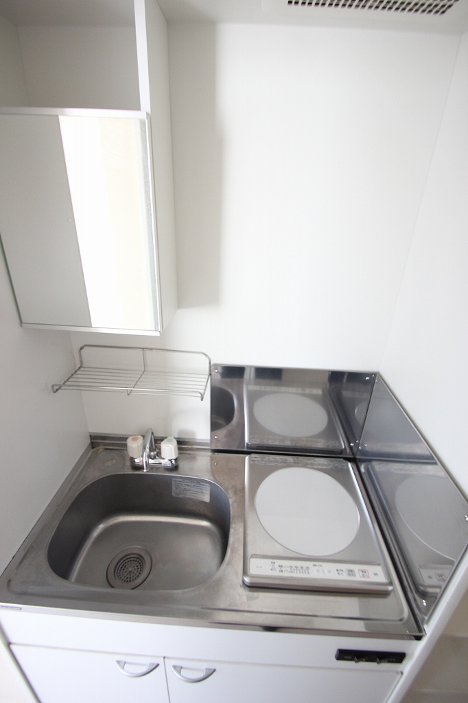キッチンはIHのクッキングヒーターのついたこじんまりとしたタイプです