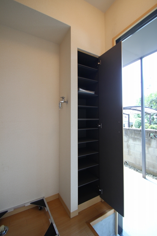 入口の横にはシューズボックスがあって、靴の収納もバッチリ!