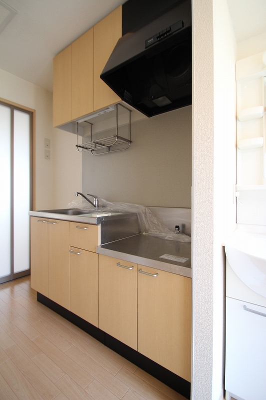 ガスコンロ置場は2口サイズも置けるスペースになっています。