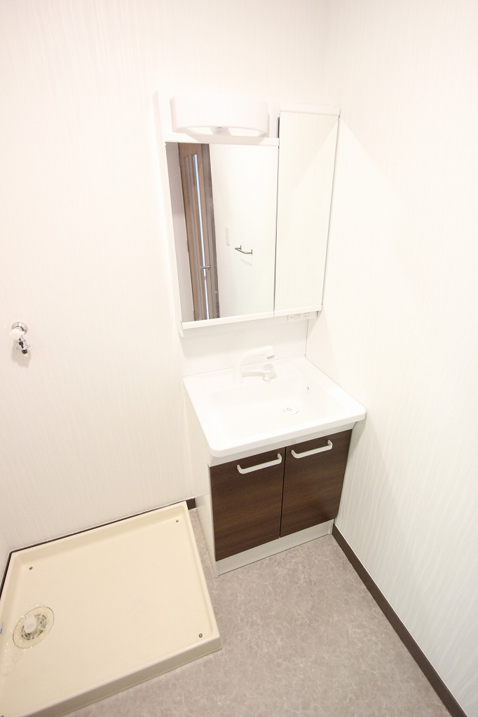 シャワードレッサータイプの洗面台が今回交換で設備されておりますので、朝の忙しい時間はここで髪のセットを行えちゃいます