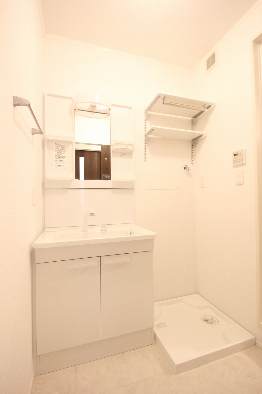 洗面所はこんな感じでシャンプードレッサーの独立洗面台仕様です