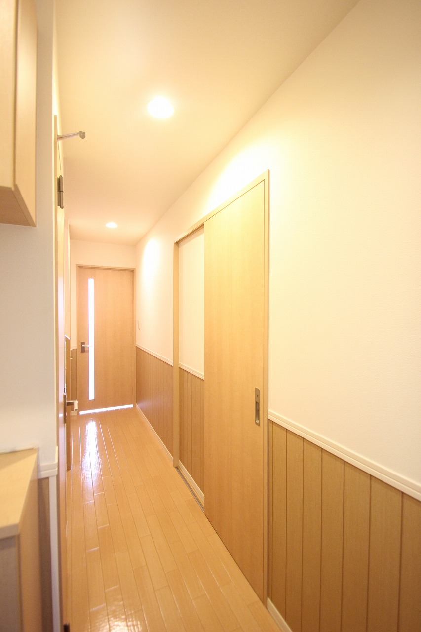 1階の廊下はこんな感じで来訪された方に室内が丸見えとならない仕様なのは個人的にうれしいポイントかと思います
