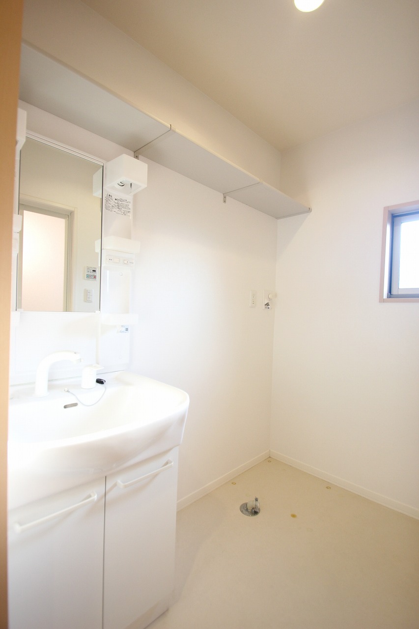 洗面所はこんな感じで洗面台はシャンドレ仕様なので、洗面所での朝シャンはしやすいですよ