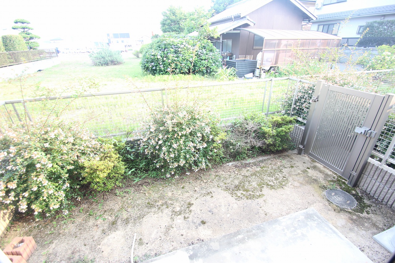 お庭はこんな感じでプランターを置いてガーデニングをしたりできる広さがございますよ