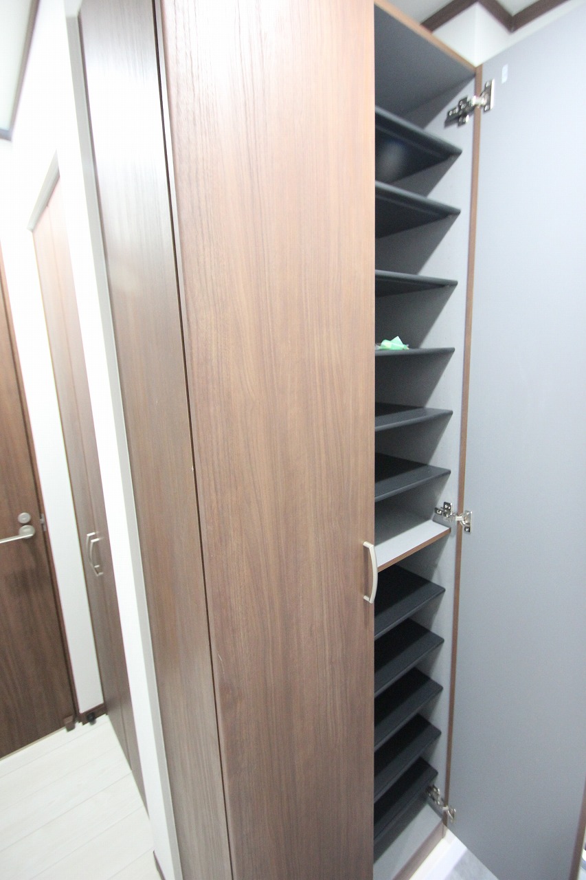 シューズボックスは可動棚板タイプの広めのもので靴が多い方でも安心ですね