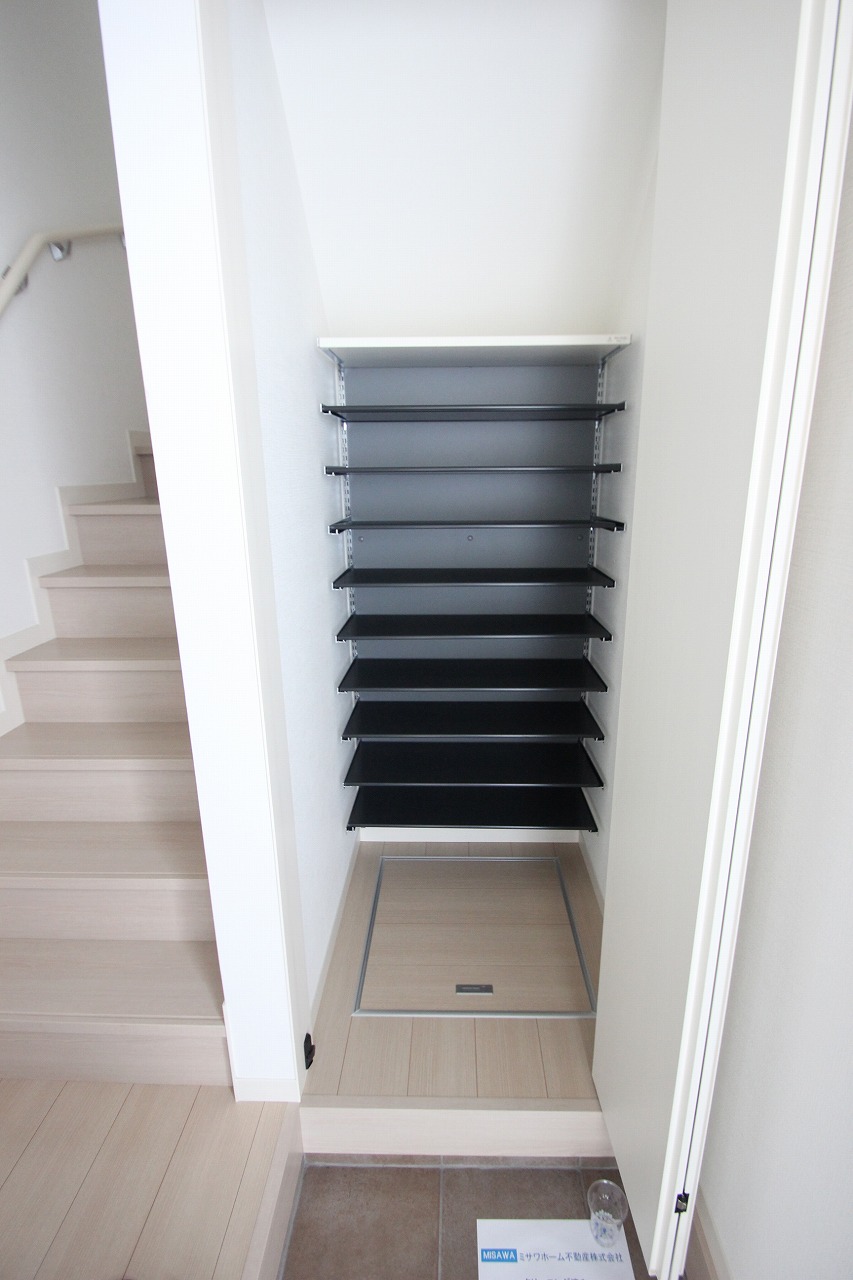 シューズボックスは奥行きがあり、靴以外の収納にもお使いいただけそうです