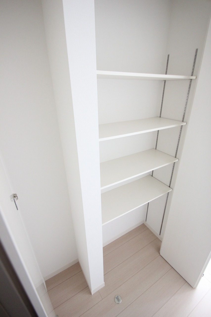 階段を上がった先の廊下には↑の収納スペースもございますのでお出かけ用の鞄を置いたりするのに適していそうですね