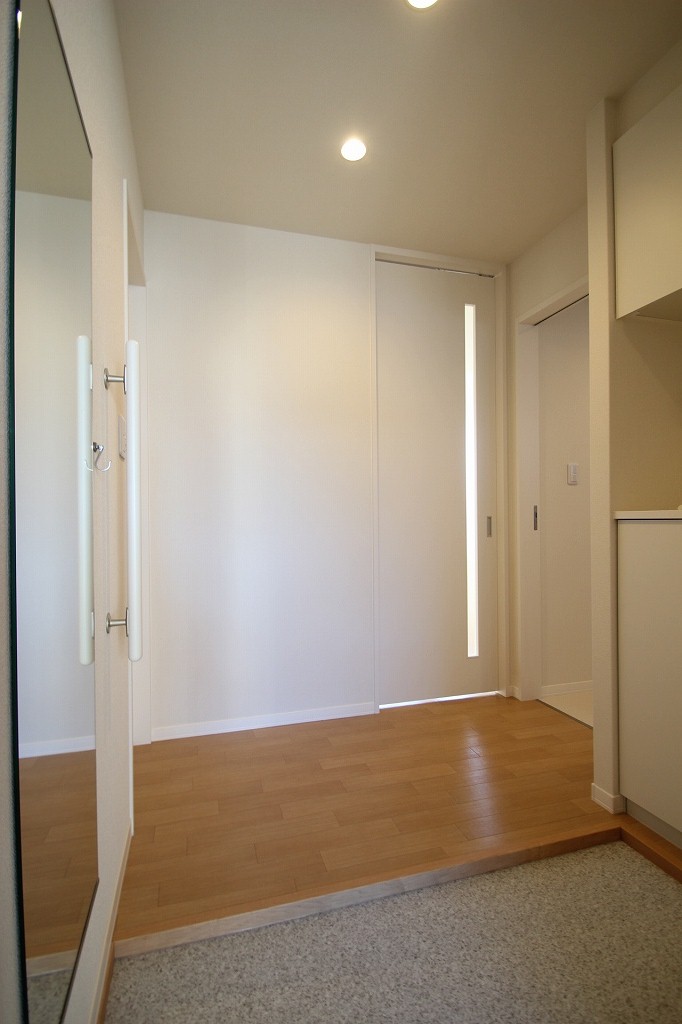 姿見付きの広めの玄関に、お手洗いや洗面所も玄関スペースに